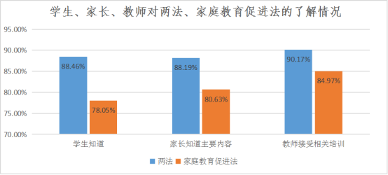 04 《家庭教育促进法》在学生、家长及教师中的普及率均低于两法。
